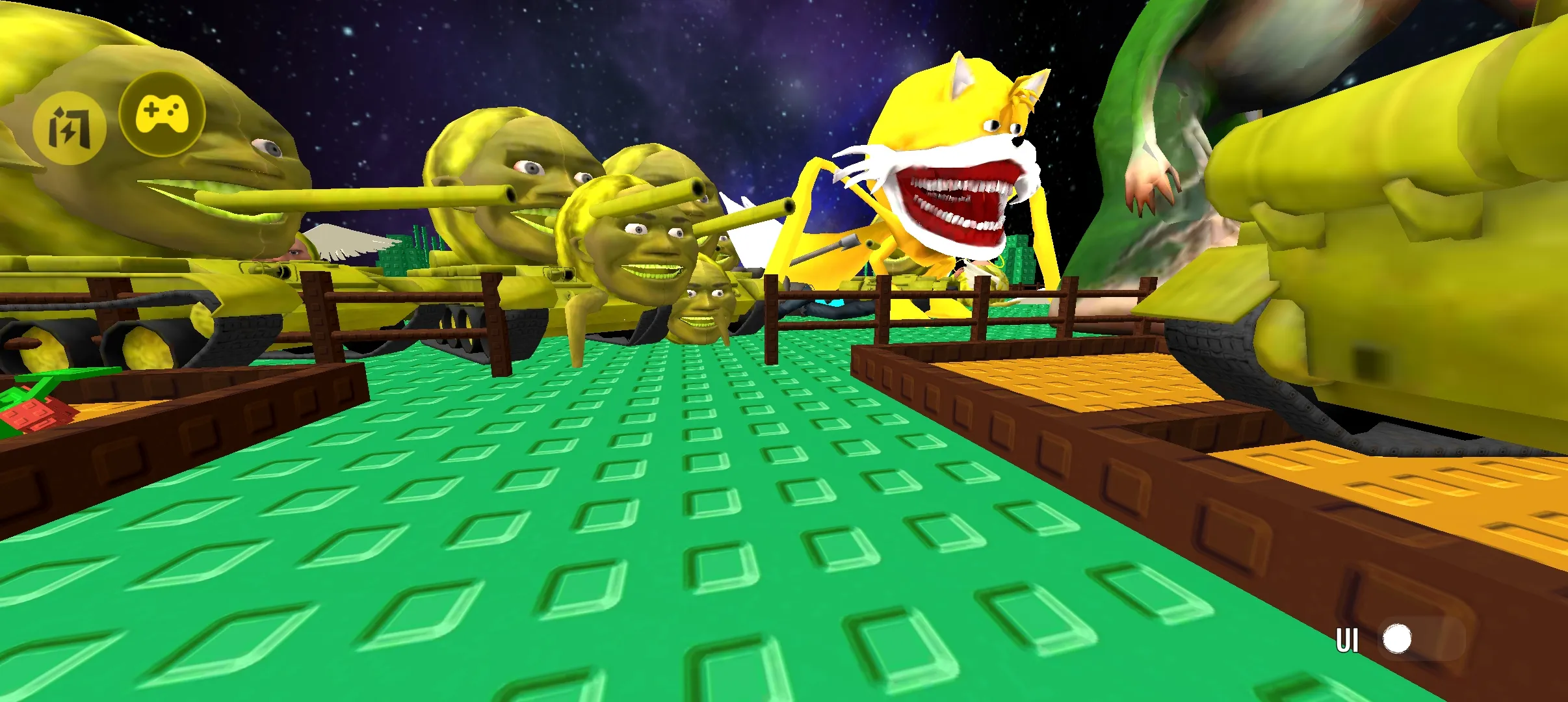 2. 丰富战斗:可与多种热门模因角色展开战斗,支持奔跑、飞行与射击操作,玩法几乎没有任何限制,体验快节奏的射击冒险。