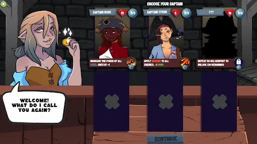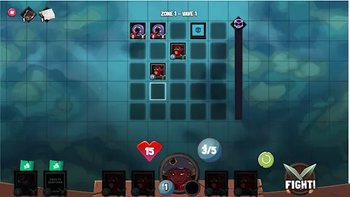 独特战斗玩法:拖动角色卡牌放置格子,点击船长释放技能开始战斗,角色自动攻击敌人,清理敌人后刷新更多敌人,攻击宝箱可获额外奖励,新角色卡牌加入需挑选替换。