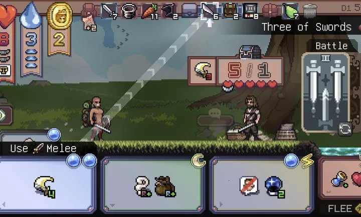 3. 丰富元素融合:融合了Roguelike类、背包管理、组牌元素、回合制RPG战斗以及怀旧像素画面等多种元素,带来独特游戏体验。