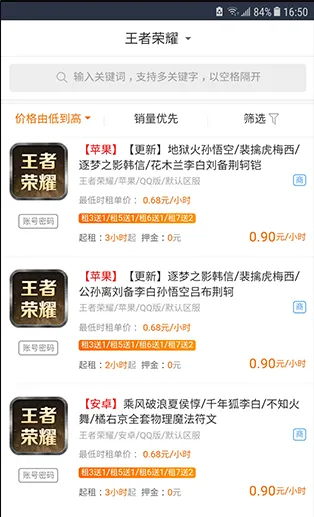 1. 热门游戏账号丰富:覆盖王者荣耀、和平精英、CF、英雄联盟、绝地求生等众多热门游戏,提供高段位、装备绚丽、皮肤众多的大神账号,让玩家轻松体验高端帐号。