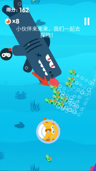 1. 精彩水下冒险:玩家跟随可爱小青鱼展开水下冒险,探索五彩斑斓的海洋世界,收集宝藏和道具,躲避危险敌人与障碍物。