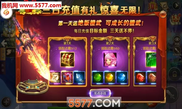 3. 首充赠送极品传说武器、珍稀魅惑猫女宠物与死神镰刀高级宝石套装。