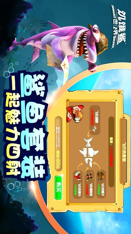 3. 精彩丰富的玩法:承担超20种不同任务,有高分挑战、猎物狩猎和史诗Boss战等;还有掠食性宠物助力,释放鲨鱼捕食潜能的超大套餐等。