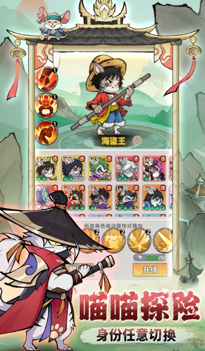 《探探猫大作战》能帮你打造最强阵容!在这款游戏里,你可以收集众多猫咪角色,像小丑路飞、侠客赵云等,每个角色都有独特技能。战斗模式自动,只需合理放置角色就能轻松通关拿丰厚奖励。游戏亮点超多,猫咪角色丰富,还能在不同环境变身。作为铲屎官,收集猫粮能让猫咪有充沛作战精力。游戏特色满满,有全自动作战模式,闯关轻松;卡通背景超可爱,猫咪还有专属房间、武器服装。玩法多样,有放置冒险模式,享受挂机升级乐趣;迷宫玩法考验策略;还有猫神决斗模式能与其他玩家实时对决。你还能通过升级训练场、提升装备品质、培养智囊等方式提升战力。快来下载,搭配出属于你的探探猫大作战最强阵容,开启刺激冒险吧!