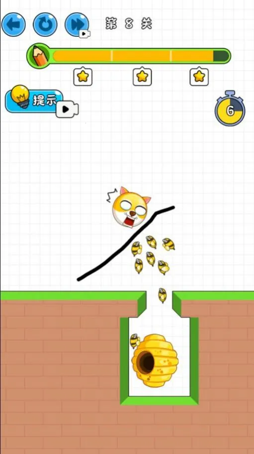 游戏特色丰富,比如可自由规划画线创作,躲避蜜蜂叮咬,运用一笔画题材等。内容方面,要运用策略技巧引导狗头躲避攻击,道具多样能干扰蜜蜂、增强狗狗力量。还能邀请好友比拼分数赢奖励、解锁成就。多样化地形带来不同考验,隐藏关卡充满挑战。
