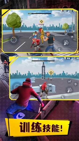 英雄职责体验:跟随任务指引消灭罪犯,完成英雄职责,维持城市正义与秩序。